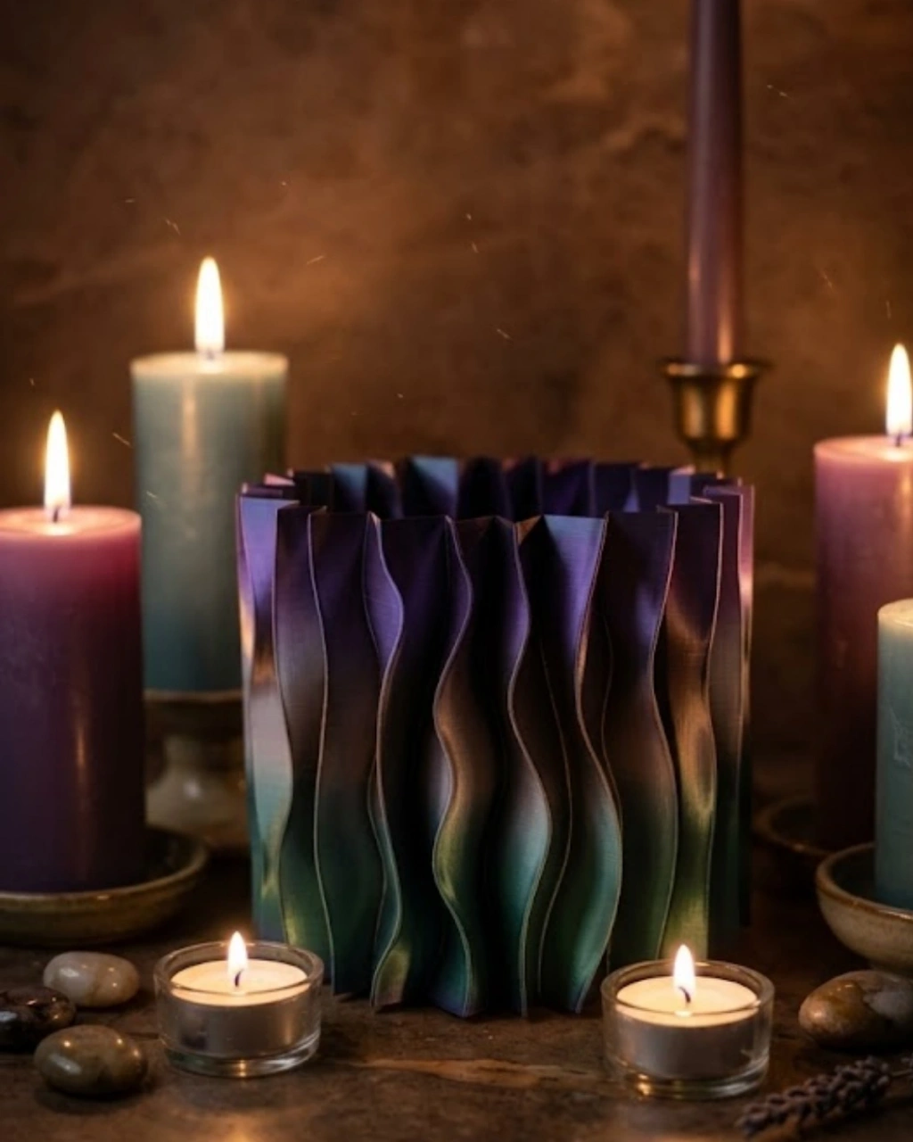 Estetik dalga form tasarımlı mor 3D dekoratif vazo, modern dekorasyon anlayışını yansıtan şık ve dikkat çekici bir dekoratif üründür. Dalgalı yüzey yapısı sayesinde klasik vazolardan farklı bir tasarım sunar ve bulunduğu ortamda modern bir dekoratif obje olarak öne çıkar.3D baskı teknolojisi kullanılarak üretilen bu dekoratif vazo, yüzeyindeki dalgalı tasarım sayesinde ışık ile farklı açılarda farklı gölgeler oluşturarak dekoratif bir derinlik hissi yaratır. Bu sayede ürün yalnızca bir vazo değil aynı zamanda sanatsal bir dekoratif obje olarak da değerlendirilebilir.Mor renk tonları dekorasyonda zarif ve estetik bir görünüm oluşturur. Bu nedenle mor dekoratif vazo özellikle modern, minimalist ve sanatsal dekorasyon stilleri ile uyum sağlayabilecek bir tasarıma sahiptir.Dekoratif mor 3D vazo özellikle kuru çiçekler, dekoratif bitkiler veya minimal bitki düzenlemeleri için oldukça uygun bir kullanım sunar. Bunun yanında masa dekoru veya raf dekoru olarak da kullanılabilir.Salon, çalışma odası, kitaplık veya ofis masası üzerinde kullanıldığında bulunduğu ortama modern ve estetik bir atmosfer kazandırır. Minimalist dekorasyon ve modern dekorasyon stilleri ile uyumlu bir kullanım sunar.Dekoratif 3D mor vazo aynı zamanda dekoratif hediye alternatifi olarak da tercih edilebilir. Ev hediyesi, yeni ev hediyesi veya doğum günü hediyesi olarak oldukça şık bir seçenektir.Modern tasarımı, estetik görünümü ve sanatsal formu sayesinde dalgalı tasarımlı mor 3D dekoratif vazo yaşam alanlarında dikkat çeken şık bir dekoratif aksesuar olarak öne çıkar.