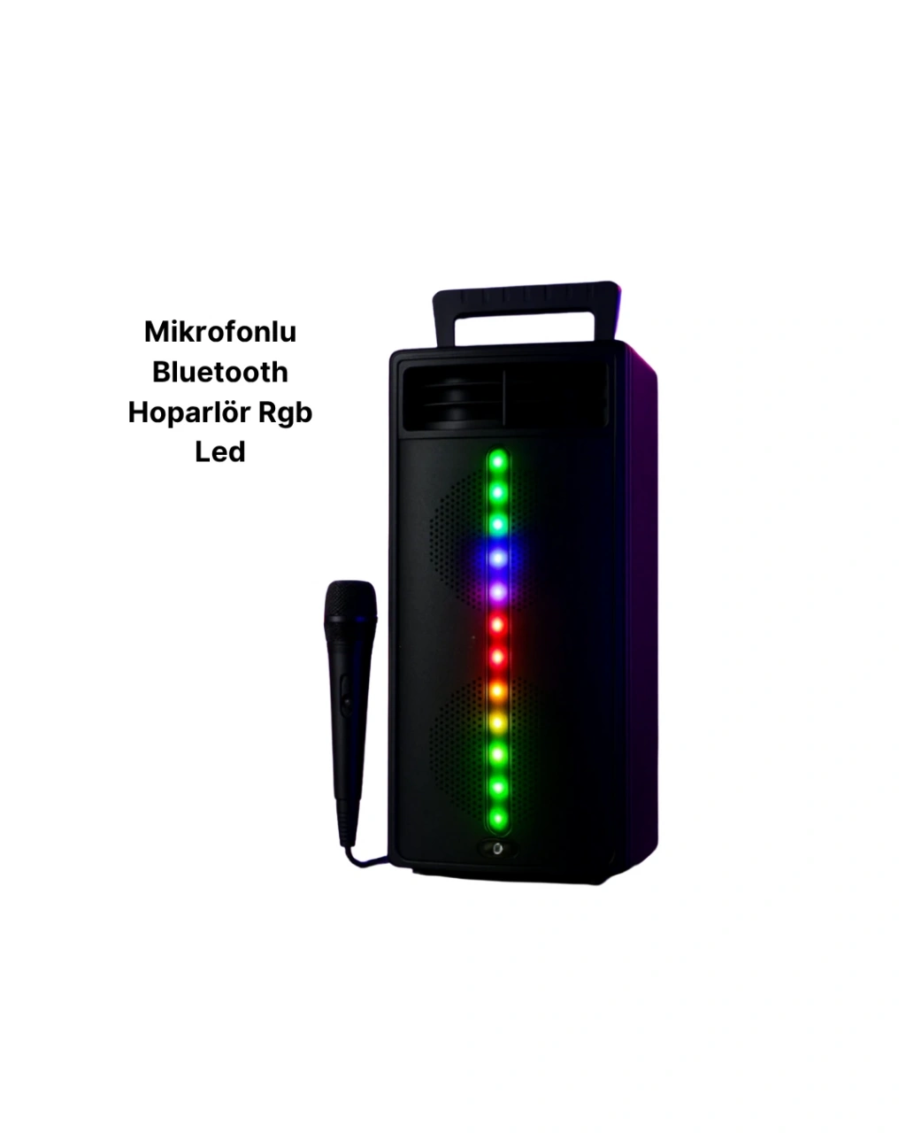Siyah gövdesi ve parlak yüzeyiyle hem modern hem şık bir görünüme sahiptir. Üzerindeki kolay kontrol tuşları sayesinde sesi, modu ve ışıkları rahatlıkla ayarlayabilirsiniz. Her yaştan kullanıcı için pratik bir tasarıma sahiptir. Evde, ofiste veya dış mekânda kullanabileceğiniz bu hoparlör, güçlü ses kalitesi ve göz alıcı ışıklarıyla her ortama enerji katar.