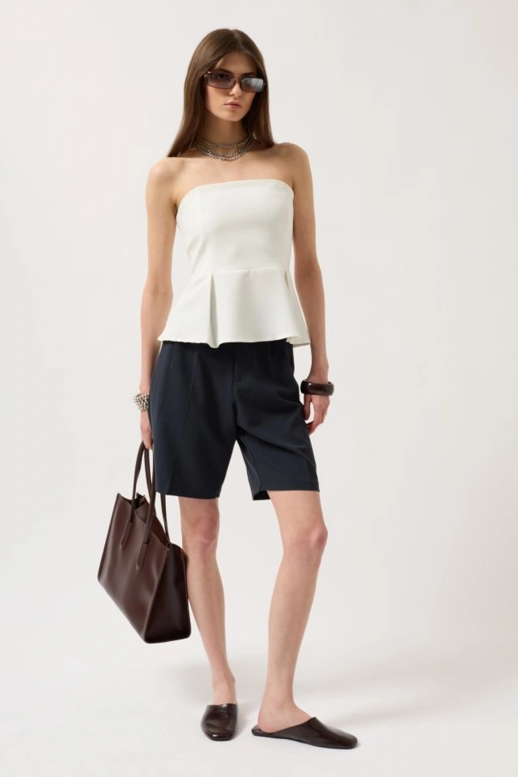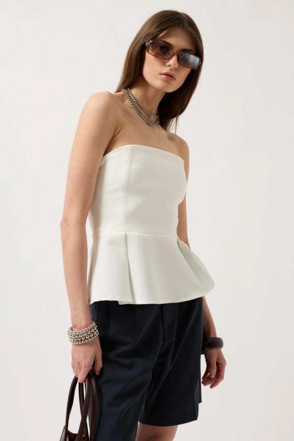 Pileli Straplez Bluz