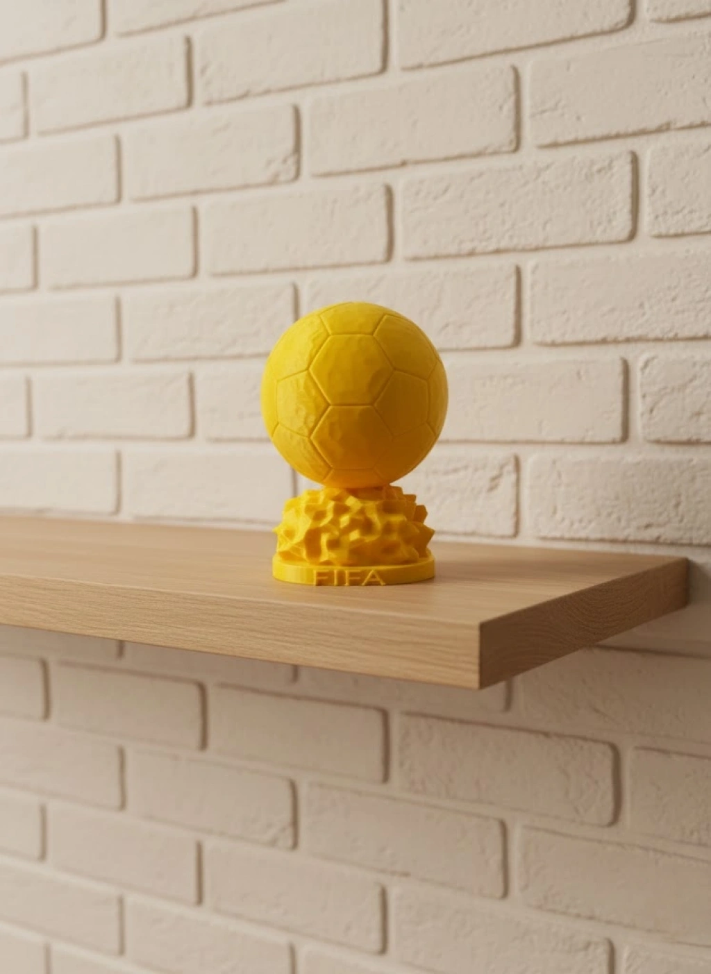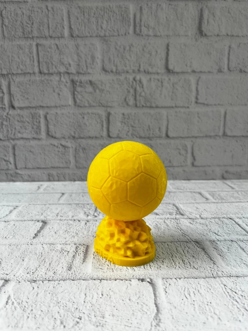 Bu dekoratif Sarı FIFA Topu, spor temalı tasarımları sevenler için hem şık hem de karakterli bir aksesuar olarak tasarlanmıştır. 10 cm boyutuyla kompakt, kullanışlı ve dekoratif açıdan oldukça güçlü bir tamamlayıcıdır. Parlak sarı yüzeyi ortama canlılık katarken alt kısmındaki özel tasarım stand, ürüne modern bir duruş sağlar. Ev ve ofis dekorasyonlarında sportif bir atmosfer oluşturmak isteyen herkes için mükemmel bir dekor ürünüdür.