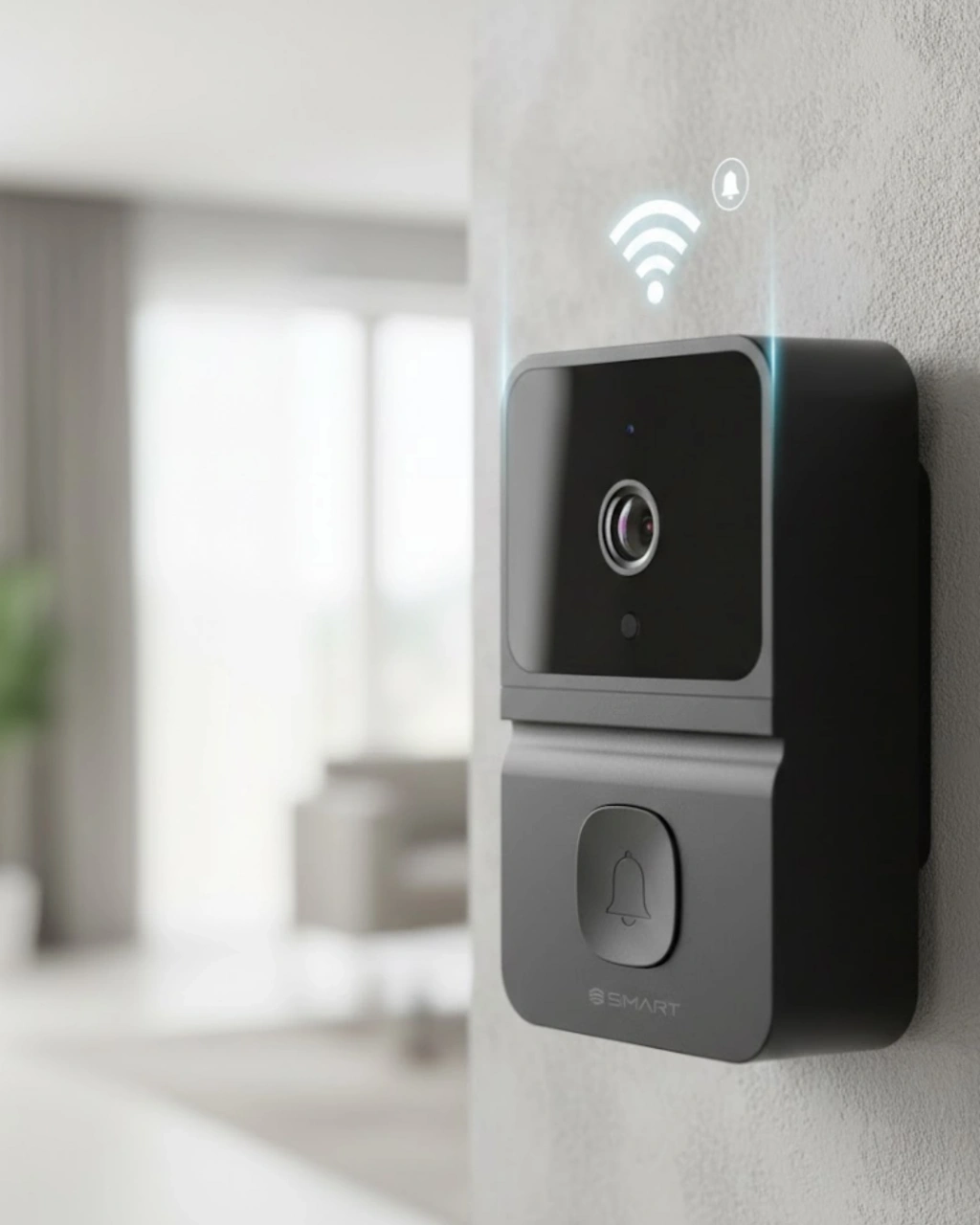 Mobil uygulama destekli akıllı kapı zili, gerçek zamanlı görüntü ve sesli iletişim özellikleriyle ev güvenliğini güçlendirir. Şarjlı bataryası ve kolay kurulumu sayesinde kullanıcı dostudur.
