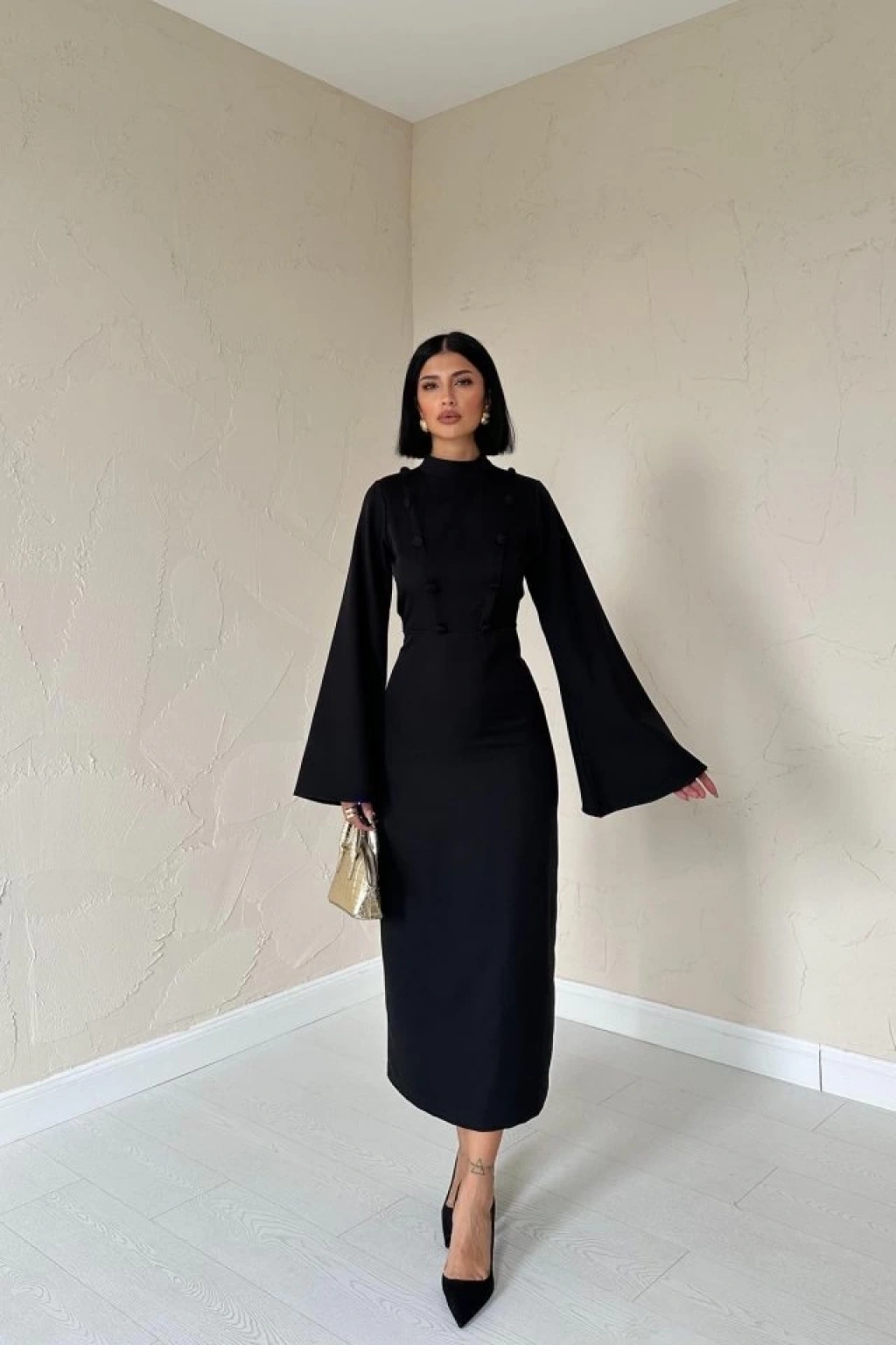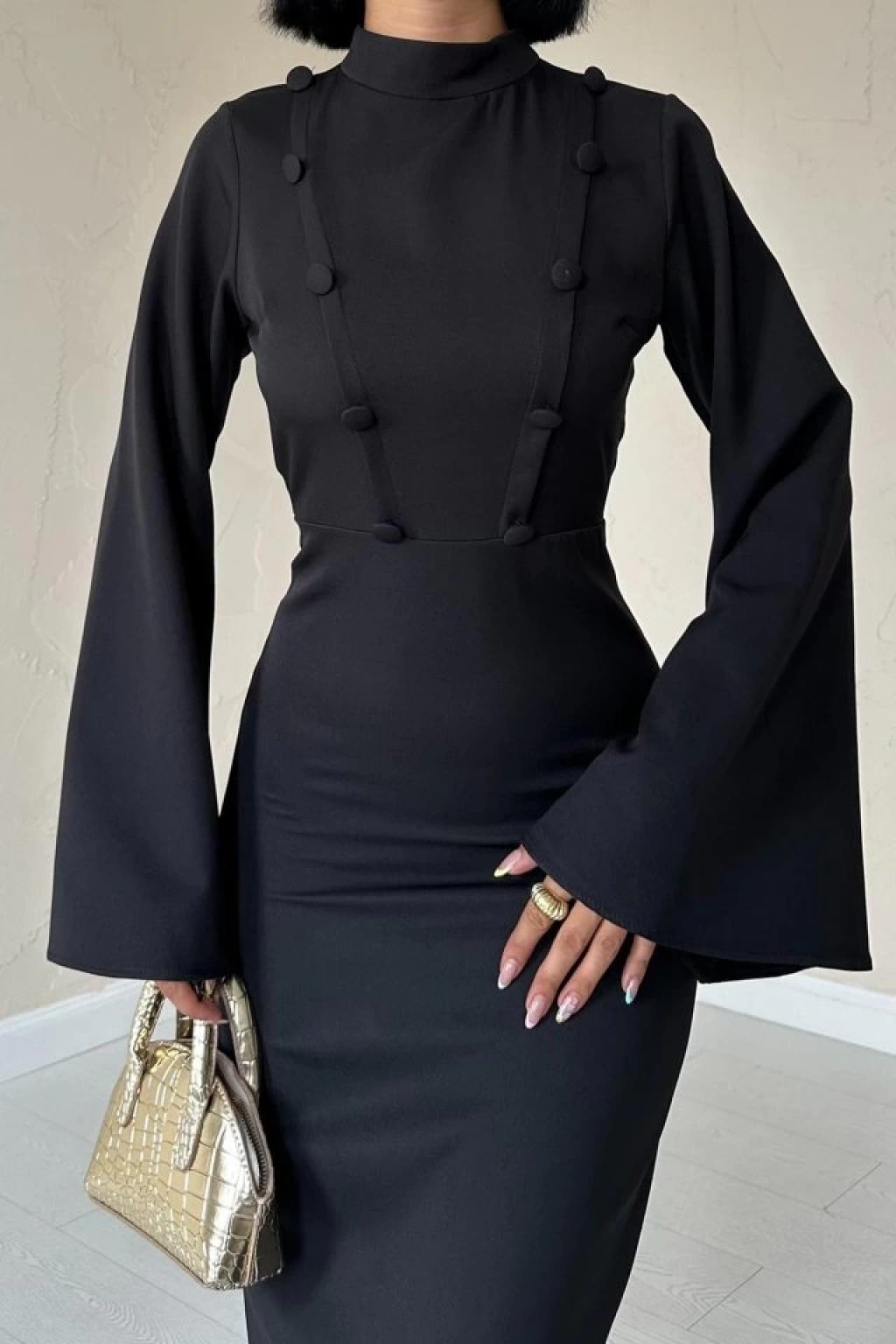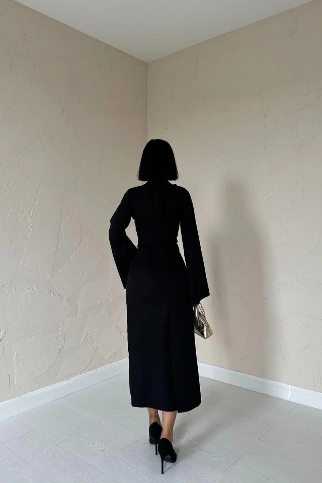 Siyah Tek Kollu Elbise
