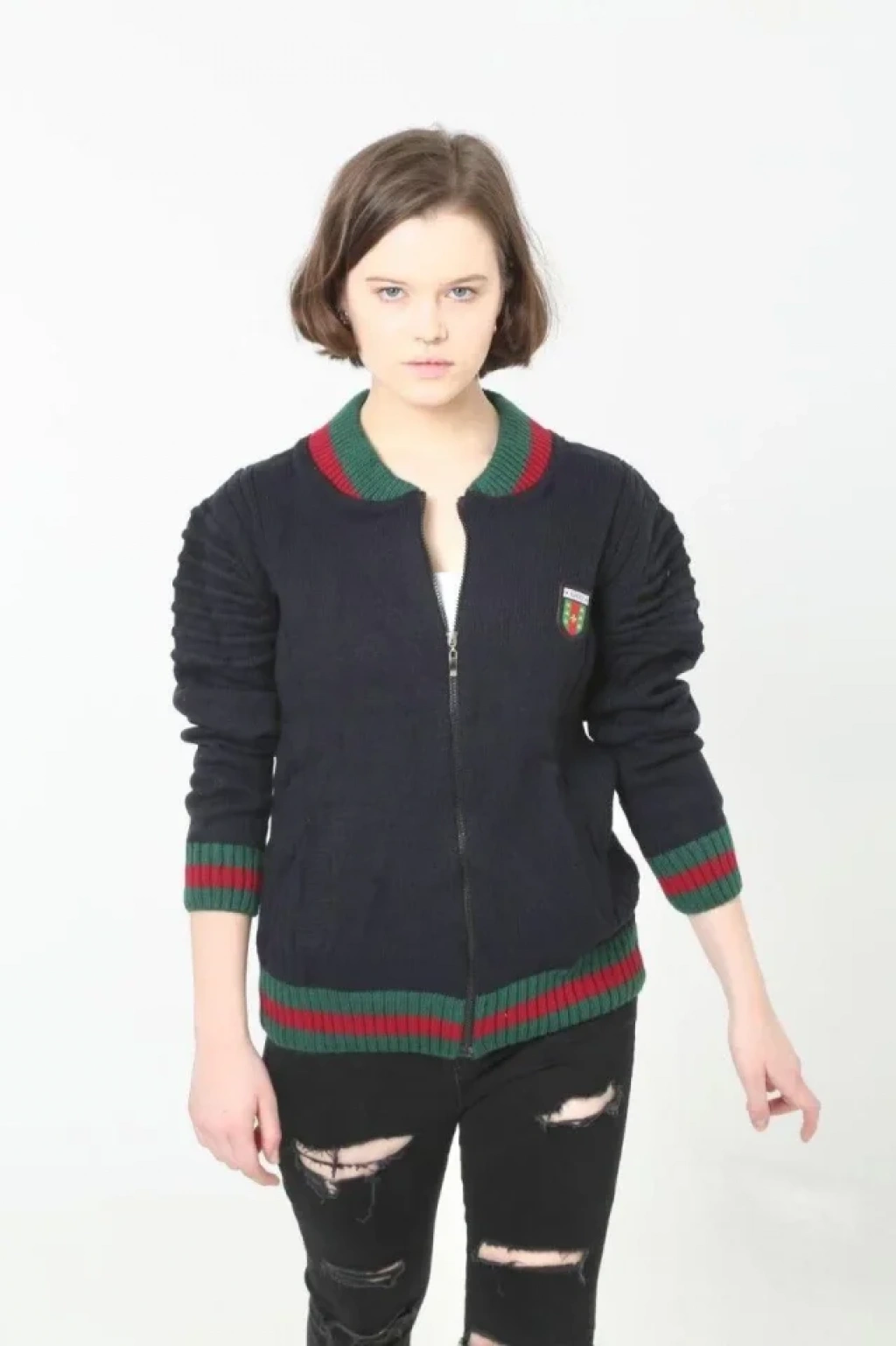 Tam Fermuarlı Triko Hırka - Lacivert