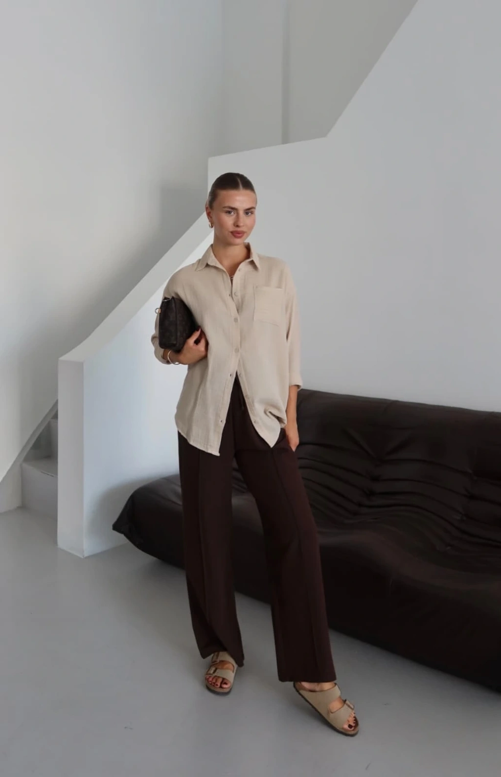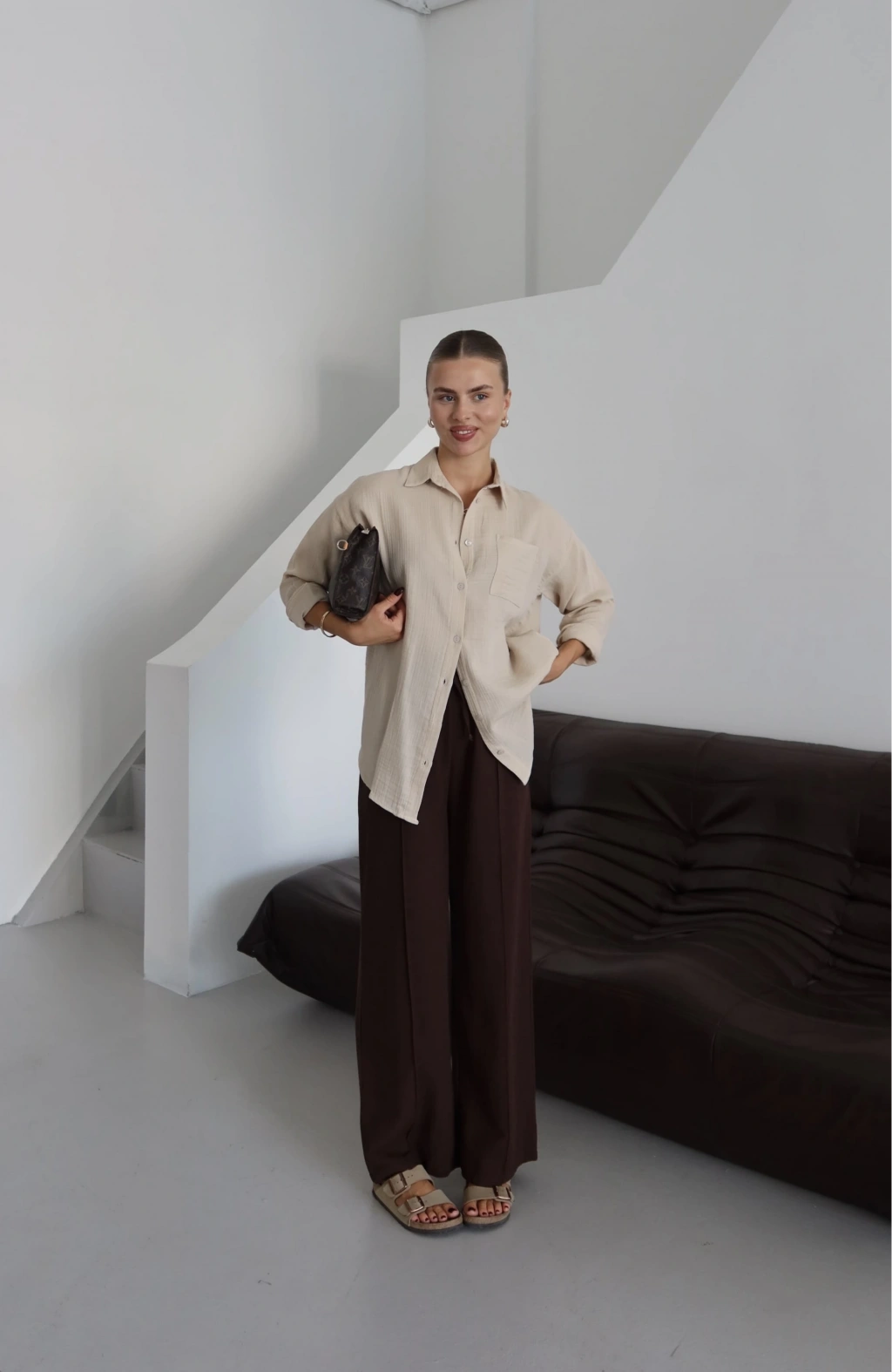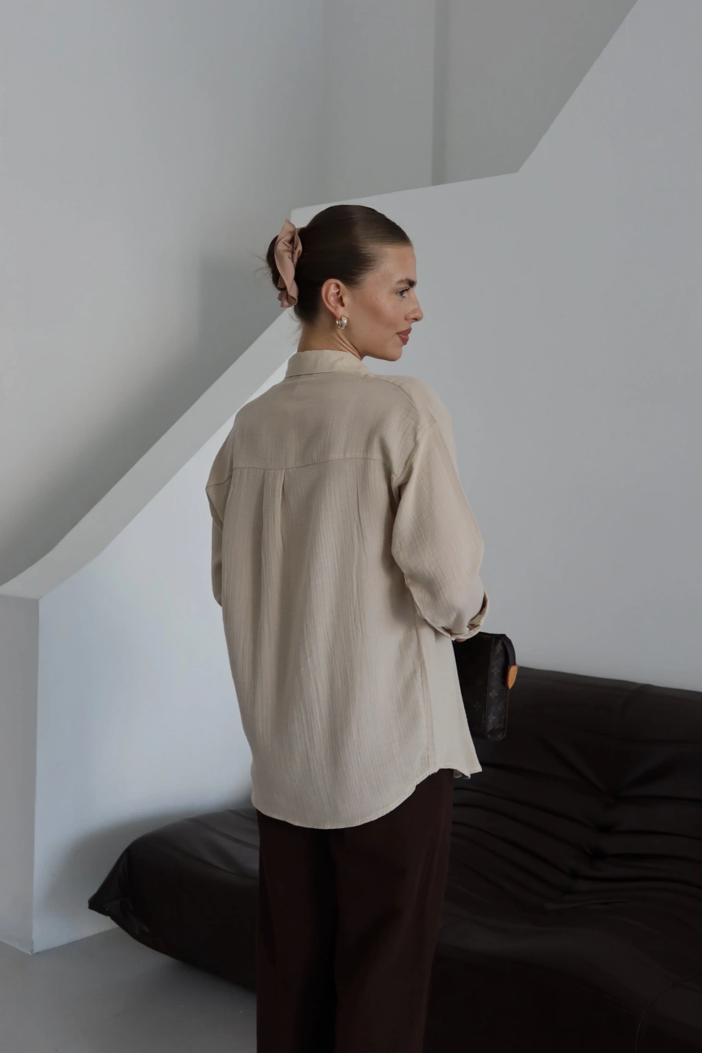 Tek cepli müslin gömlek bej pt