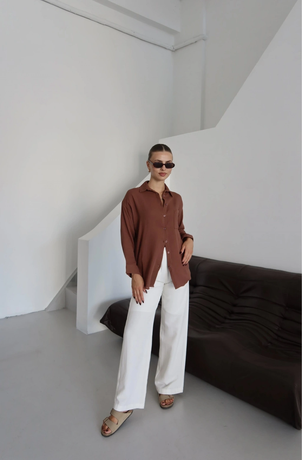 Tek cepli müslin gömlek kahve pt