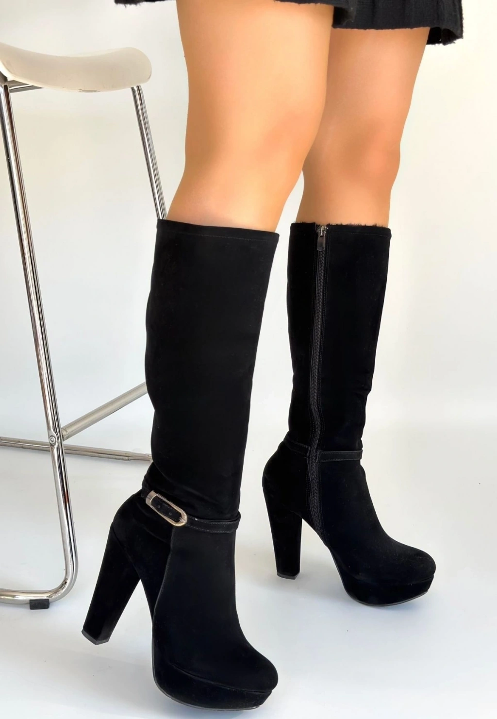 Tekja Siyah Süet Topuklu Çizme