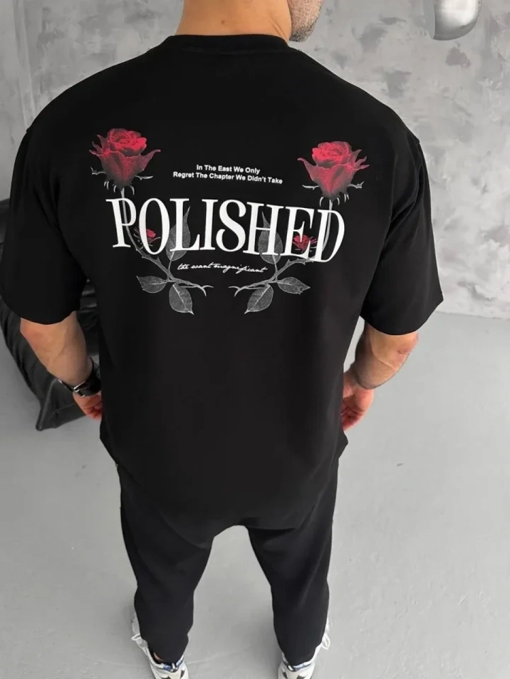 Erkek Bisiklet Yaka Kısa Kol Hav Baskılı T-shirt - Siyah