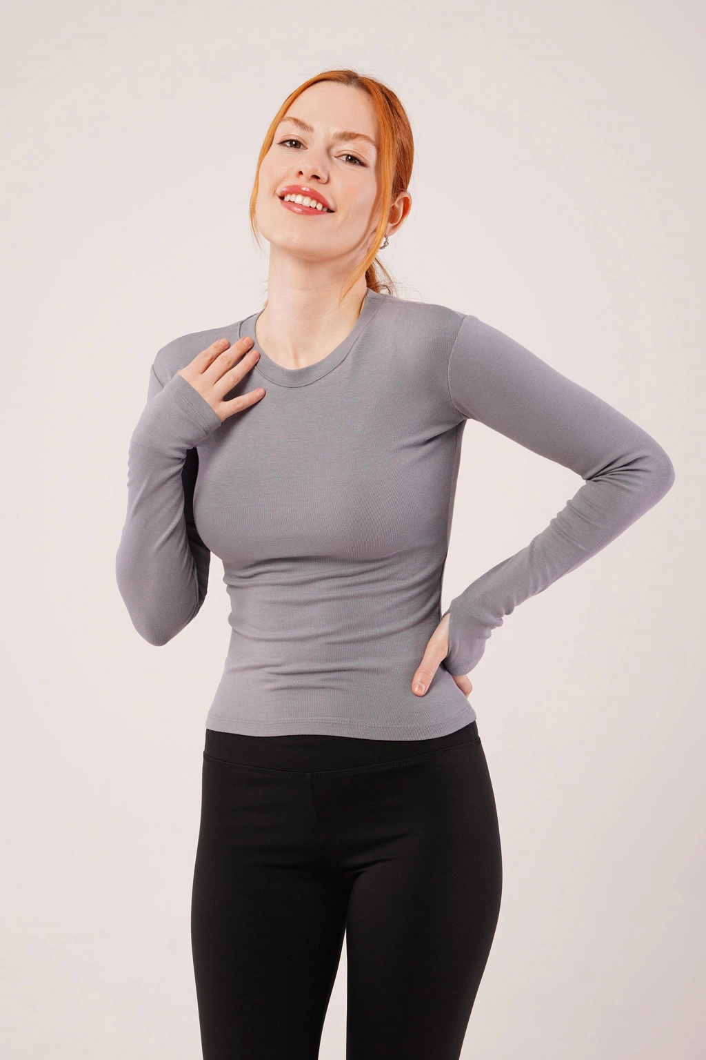 Uzun Kollu Basic Gri Bluz