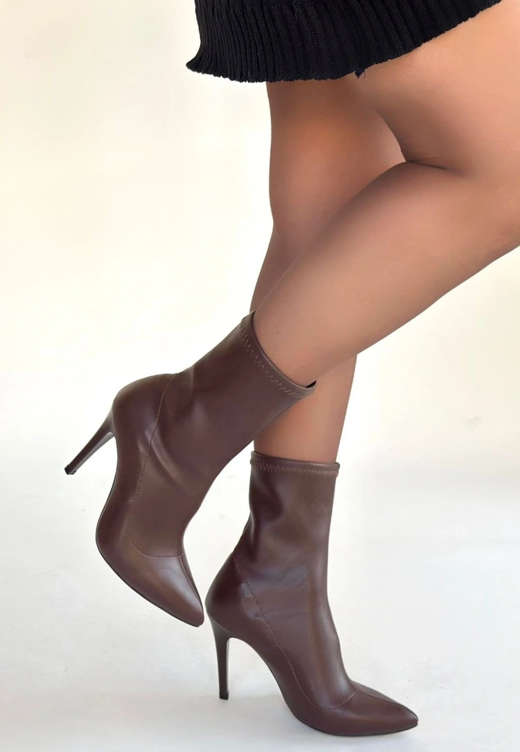 Verena Acı Kahve Cilt Topuklu Streç Bot