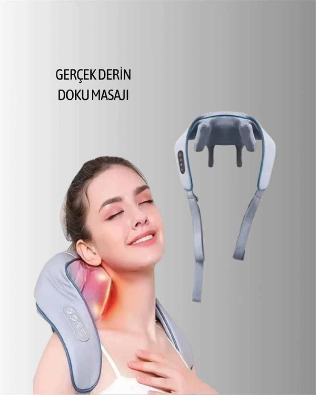 VNB-01, modern yaşamın getirdiği kas gerginliği, boyun ağrısı ve stresle mücadele için geliştirilmiş, titreşimli, ısıtmalı ve gerçek yoğurma hissi sunan gelişmiş bir boyun masaj cihazıdır. Sessiz çalışan fırçasız motoru, gelişmiş biyonik masaj teknolojisi ve ergonomik U-tasarımı ile boyun, omuz, sırt, bel ve bacak gibi birçok bölgeye uygulanabilir. Temel Özellikler: Gerçek Derin Doku Masajı: Parmak ucu simülasyonuna dayalı biyonik yoğurma teknolojisi, insan eliyle yapılan profesyonel masaj manevralarını taklit eder. Titreşimli Masaj + Isı Terapisi: Titreşim özelliği kasları uyarırken, etkili ısıtma sistemi kan dolaşımını destekleyerek rahatlamayı derinleştirir. Sessiz ve Güçlü Fırçasız Motor: Uzun ömürlü motor sessiz çalışır, böylece cihazı evde, ofiste veya seyahatte konforla kullanabilirsiniz. 3 Kademeli Hız Ayarı: Yumuşak rahatlama veya derin kas gevşetme için ayarlanabilir hız ve yoğunluk seçenekleri. 2 Masaj Modu: Gündelik stres için hafif, kas gerginliği için yoğun yoğurma modu. Geniş Uygulama Alanı: Boyun, omuz, bel, sırt ve bacaklar dahil olmak üzere birçok vücut bölgesine uygulanabilir. Kayışlı Ergonomik Tasarım: Arkadan kilitlenebilir askı sayesinde eller serbest kullanım imkanı sunar. Farklı vücut tiplerine kolayca uyum sağlar.Teknik Özellikler: Güç Girişi: 5V Güç Tüketimi: 10W Pil Kapasitesi: 1800mAh (bazı bilgilerde 2000mAh olarak da geçmektedir) Cihaz Ağırlığı: 1.12 kg – 1.29 kg arası Malzeme: A sınıfı ABS gövde, dayanıklı ve ısıya karşı dirençli Renk: Gri Kullanım Şekli: Şarjlı, kablosuz kullanımKullanım Kolaylığı: Basit Kontrol Paneli: Cihazın yan tarafında yer alan tuşlarla modlar ve hız kolayca değiştirilebilir. Açma Tuşu: Güç düğmesine basarak cihazı çalıştırabilir, titreşimi aktif edebilir ya da kapatabilirsiniz. Çoklu Ortam Uyumu: Kutudan çıkan adaptörle evde prizle ya da araçta çakmak girişiyle kullanılabilir.Kimler İçin Uygun? Masa başında uzun saatler geçiren çalışanlar Boyun ve sırt ağrısından şikayetçi olanlar Spor sonrası kaslarını rahatlatmak isteyenler Uzun yolculuklarda boyun tutulması yaşayan sürücüler Günlük hayatın stresinden arınmak isteyen herkes, günlük yaşamınızda konforu artırmak, kaslarınızı gevşetmek ve rahatlamak için ihtiyacınız olan güçlü ve taşınabilir bir çözümdür. Masajın insan eli gibi etkisini yaşarken, sessiz ve pratik kullanımı sayesinde istediğiniz her yerde kendinize zaman ayırabilirsiniz.