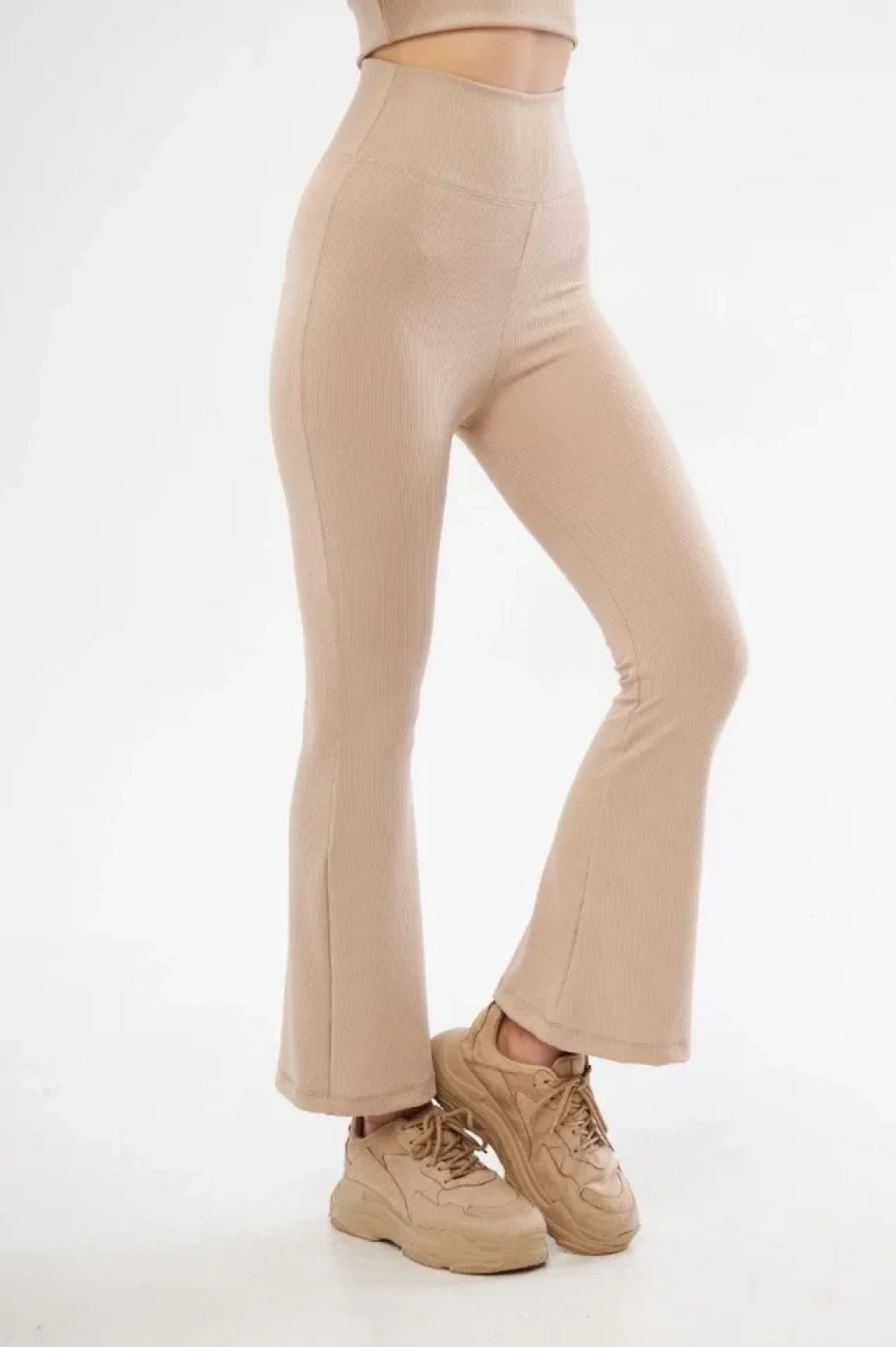 Yüksel Bel Fitilli İspanyol Paça Tayt - Bordo